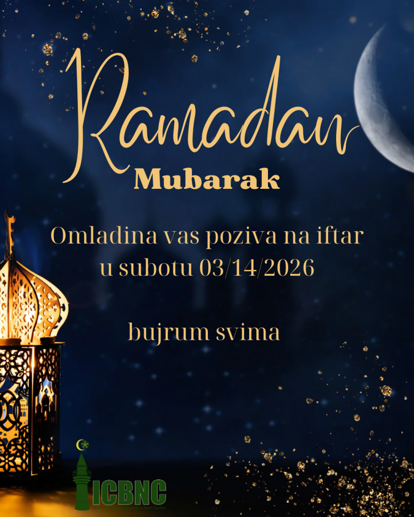 Obavještavamo vas da će u subotu, 14. marta 2026 godine, iftar u džematu organizovati naša omladina. Koristimo ovu priliku da vas pozovemo na ovaj ibadet, te da svojim prisustvom podržite ovu lijepu aktivnost.
